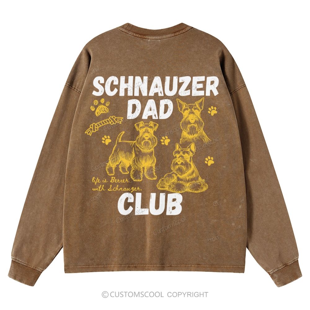 Schnauzer Dad Club Unisex Casual Washed Long-Sleeved T-Shirt Customscool