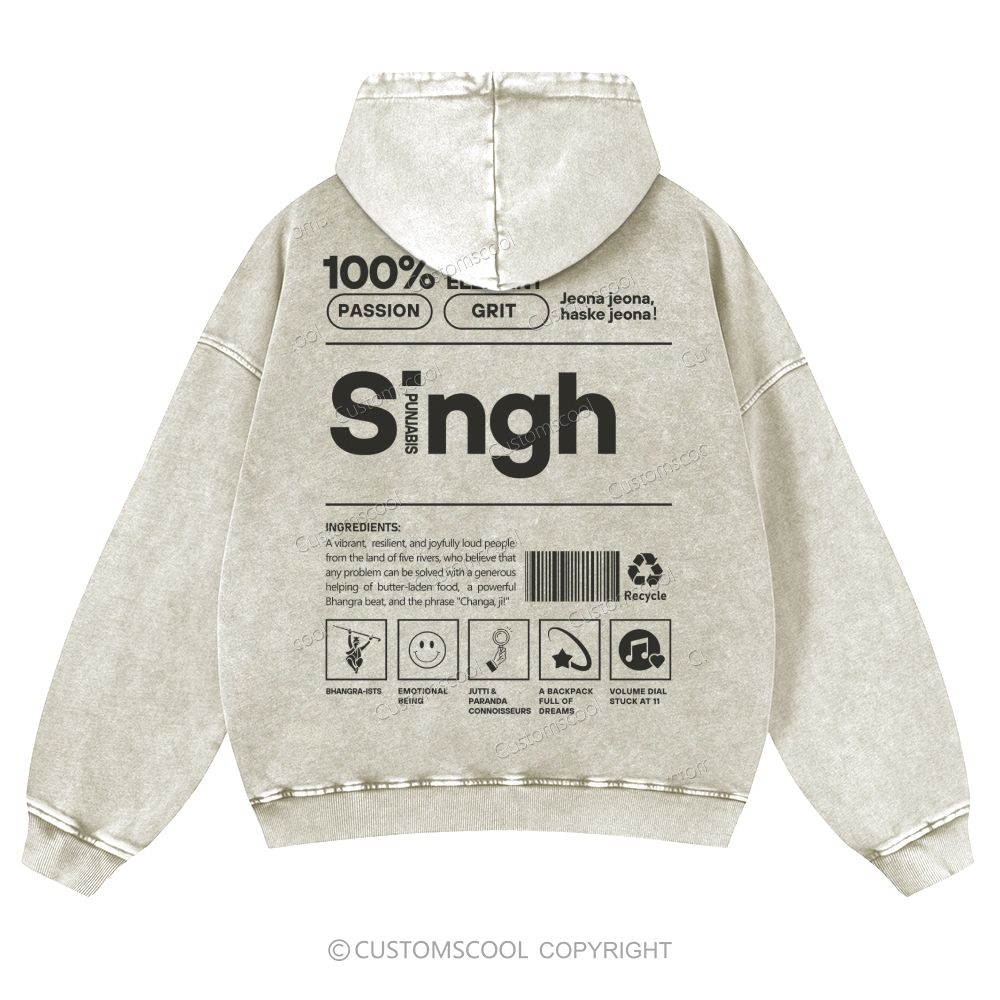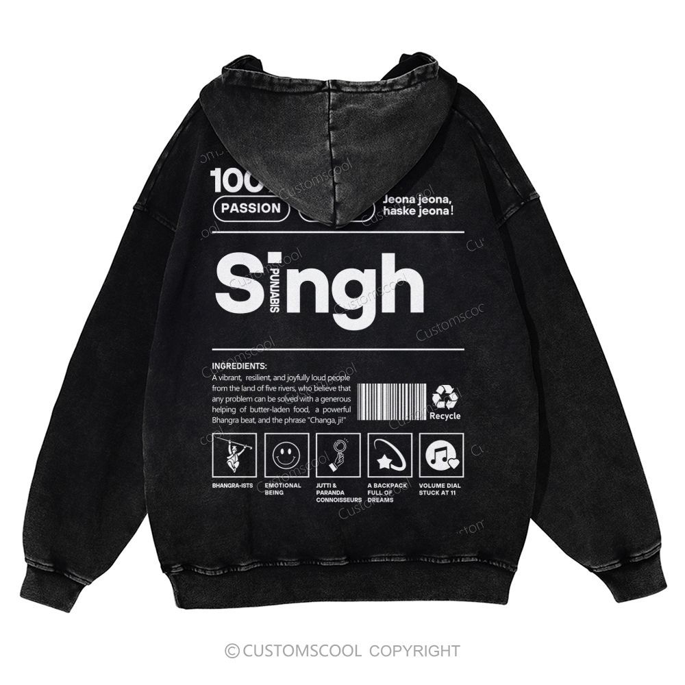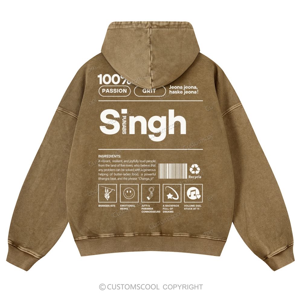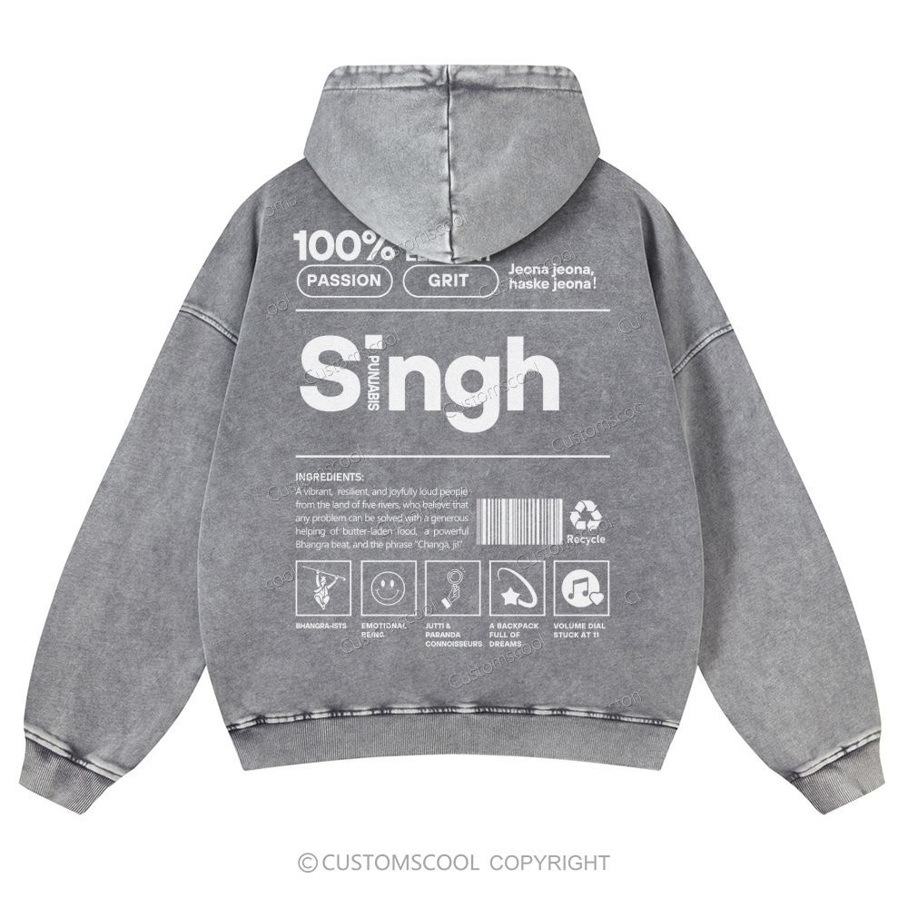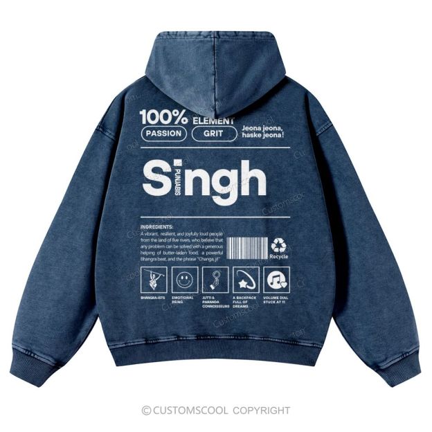 Singh Casual Washed Hoodie Customscool