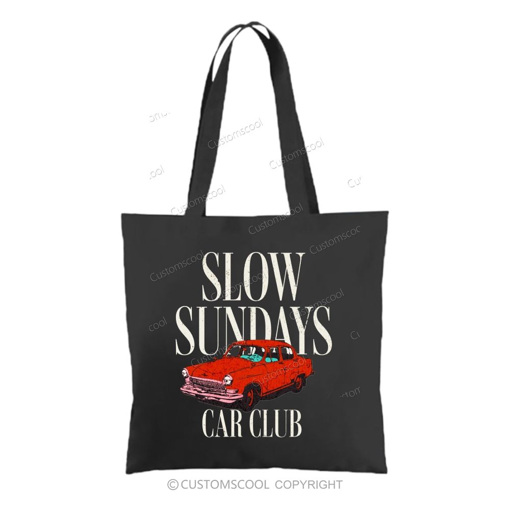 Slow Sundays Car Club Tote Bag