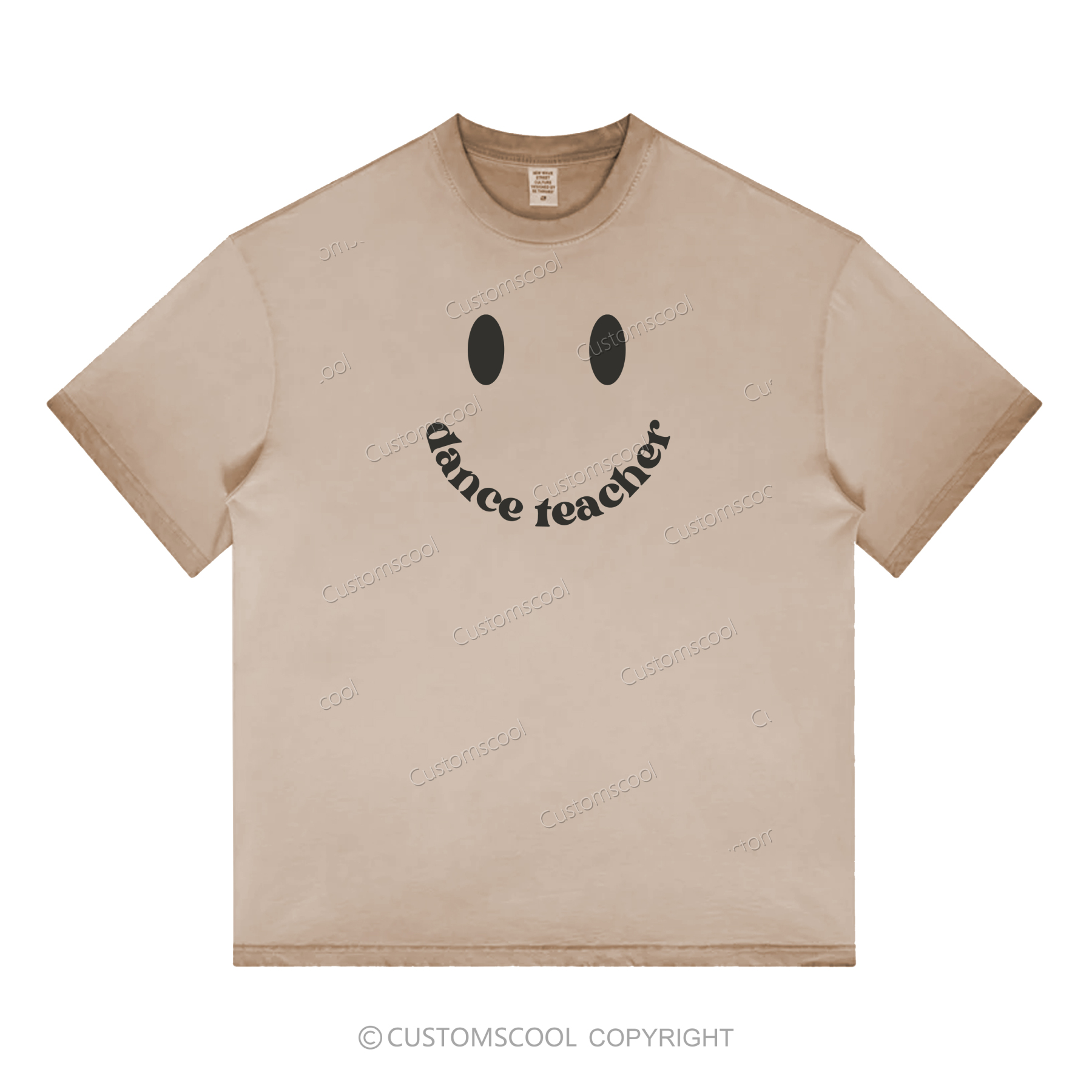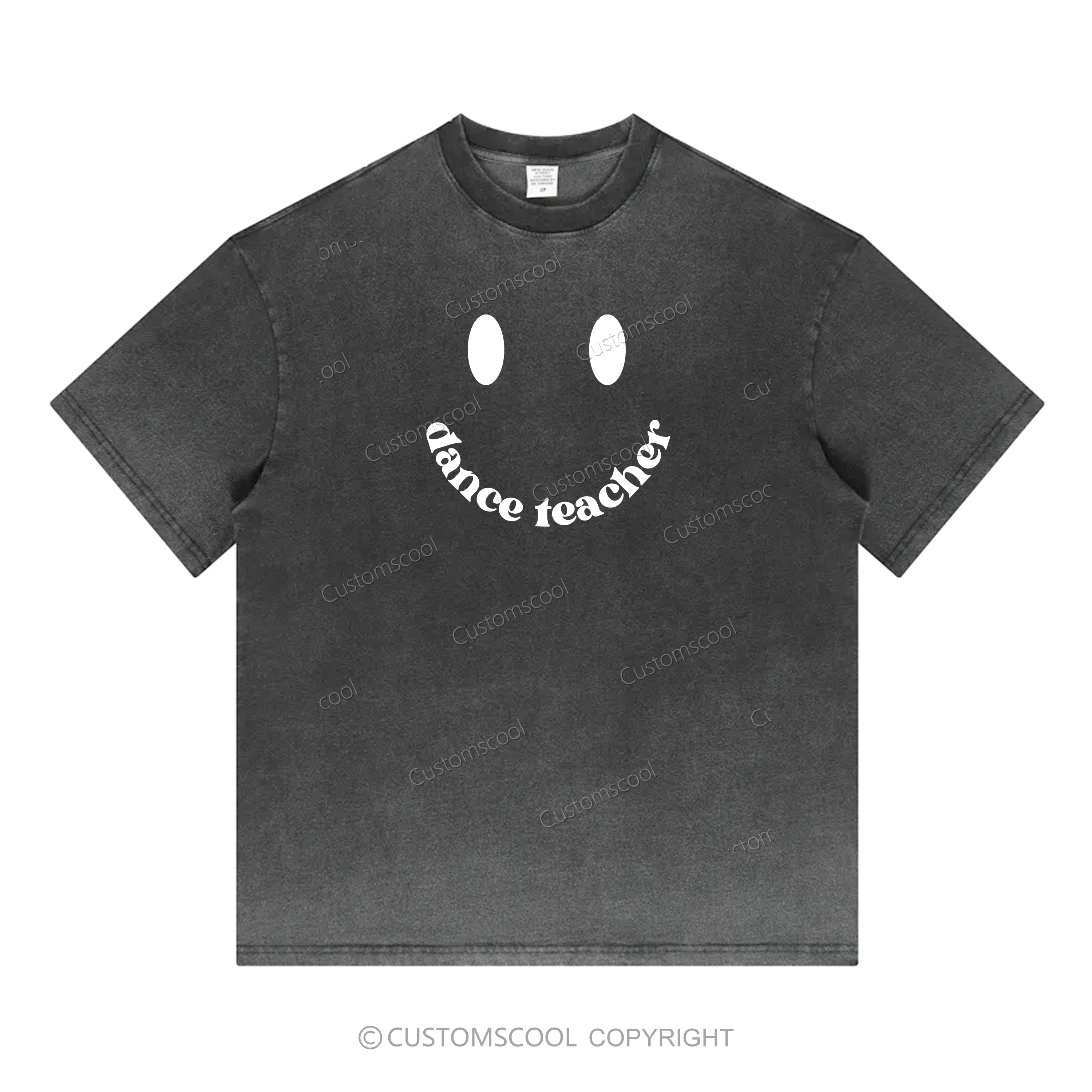 Smiley Face Dance Teacher Gradient Washed T-Shirt Customscool