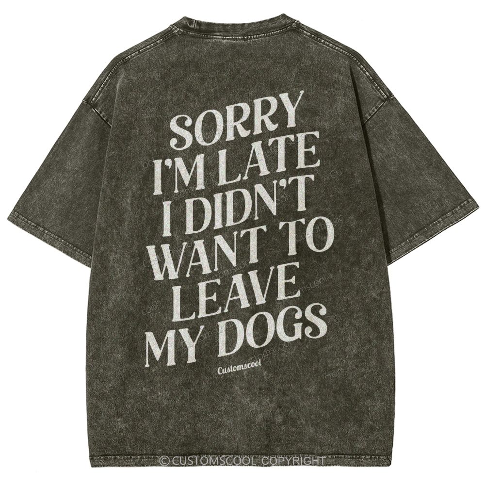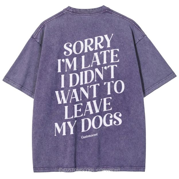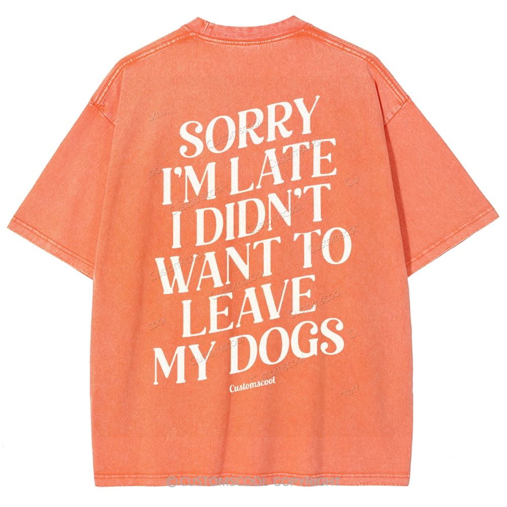 Sorry I'm Late I Didn't Want to Leave My Dogs Unisex Fit Washed T-Shirt Customscool