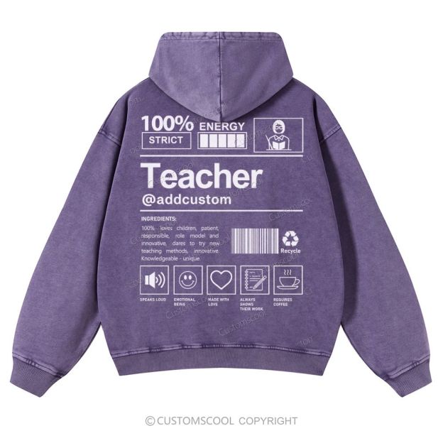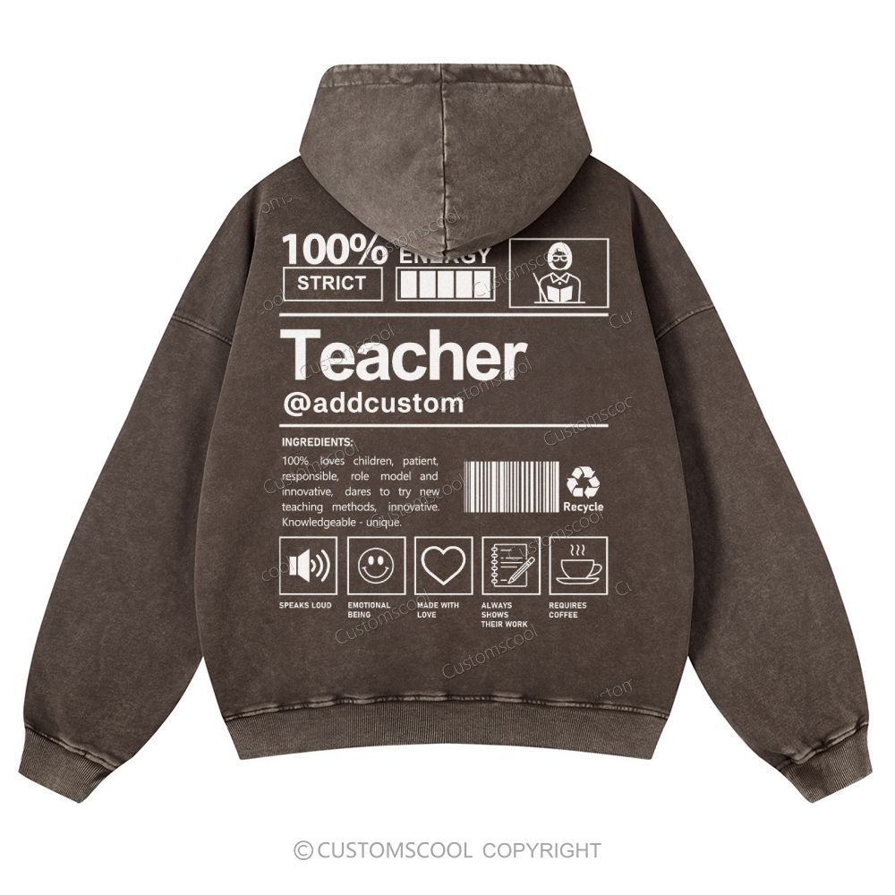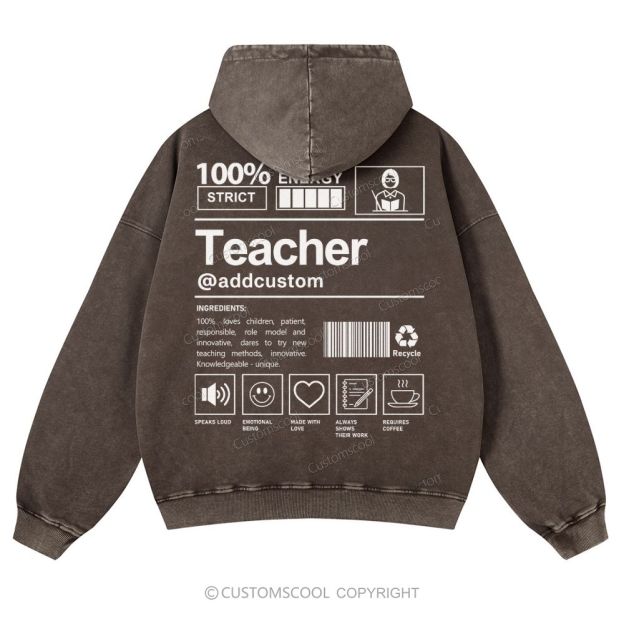 Teacher Addcustom Casual Washed Hoodie Customscool