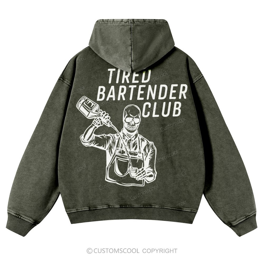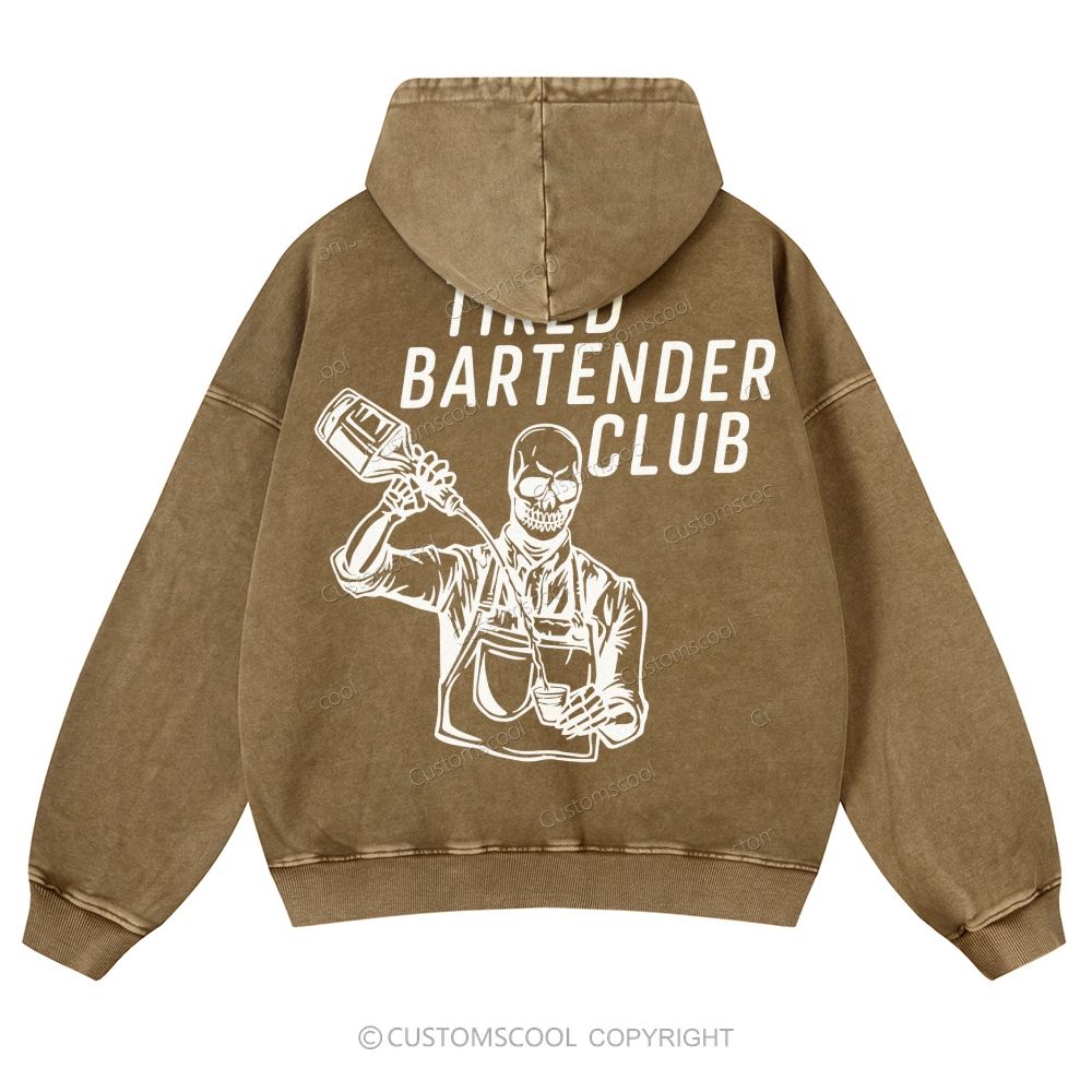 Tired Bartender Club Casual Washed Hoodie Customscool