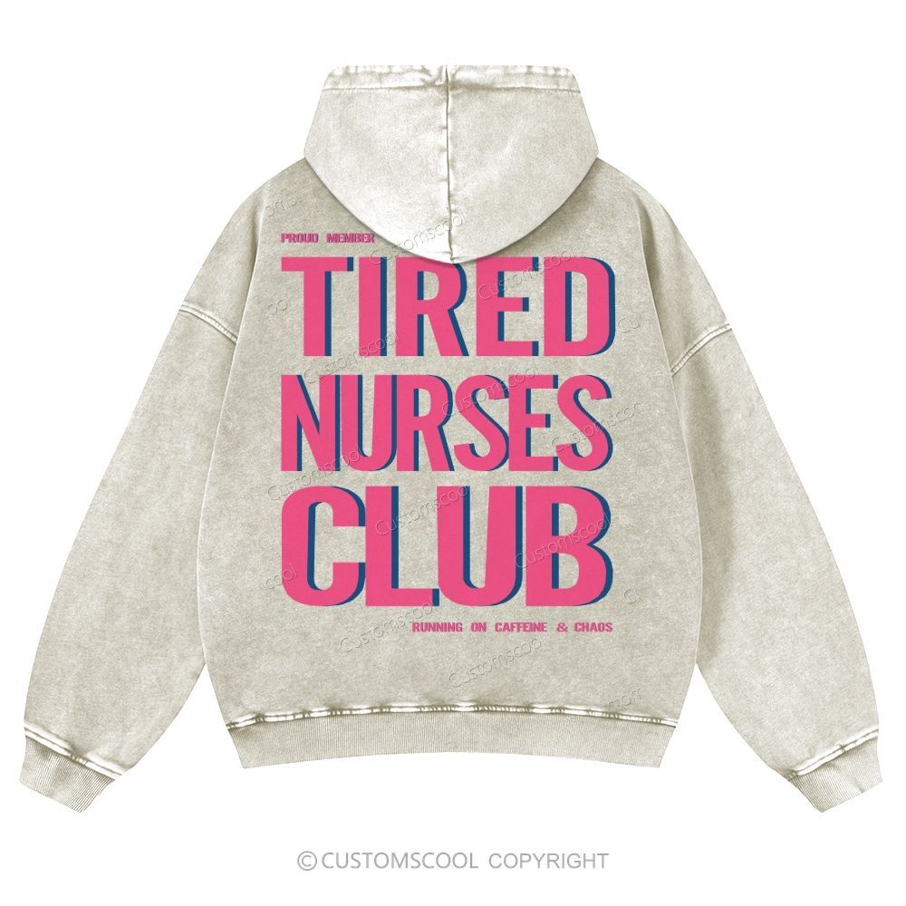 Tired Nurses Club Casual Washed Hoodie Customscool