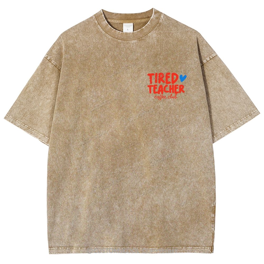Tired Teacher Coffee Club Unisex Fit Washed T-Shirt Customscool
