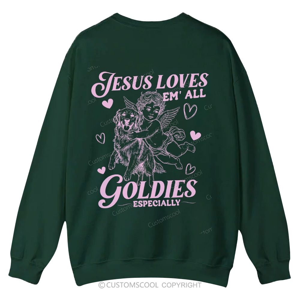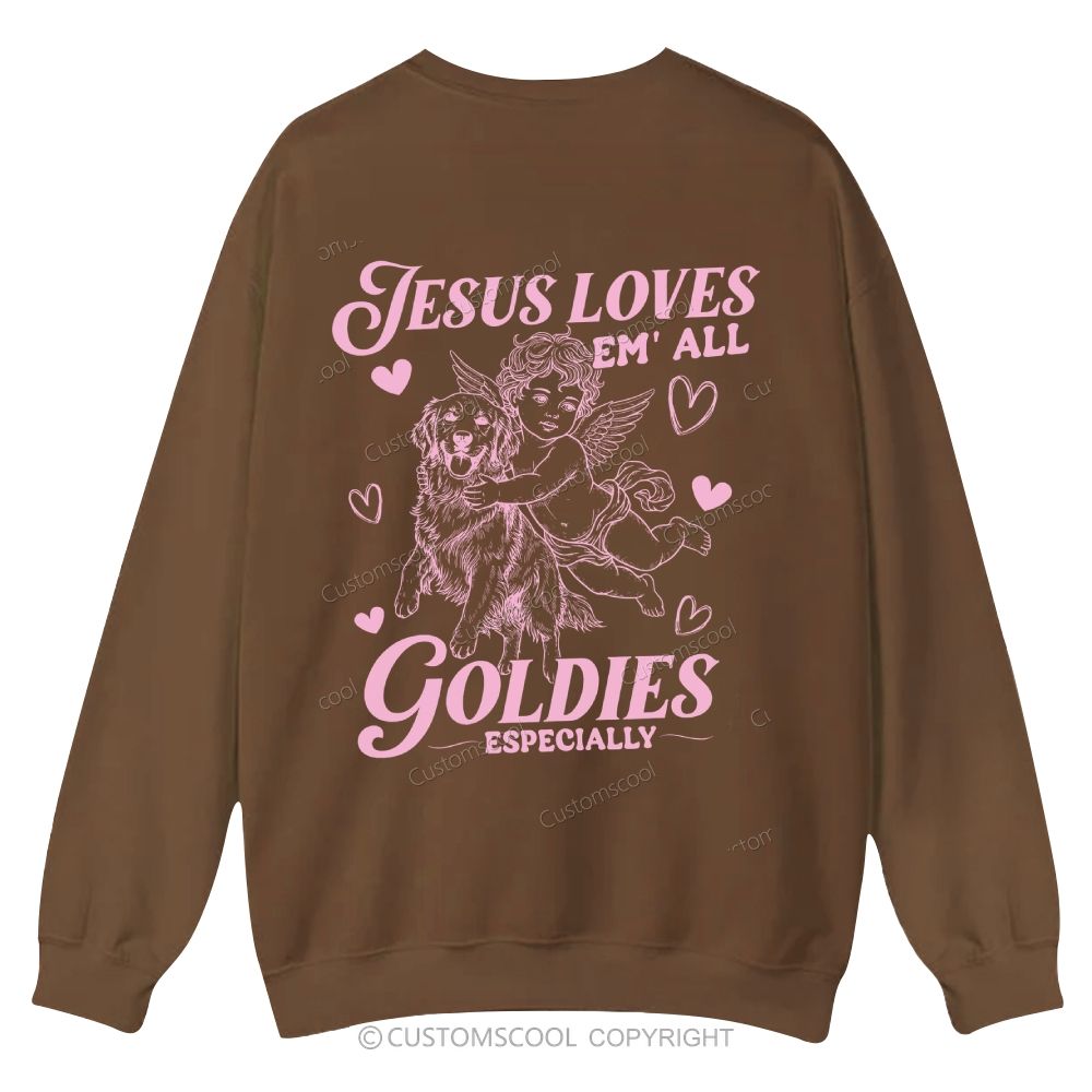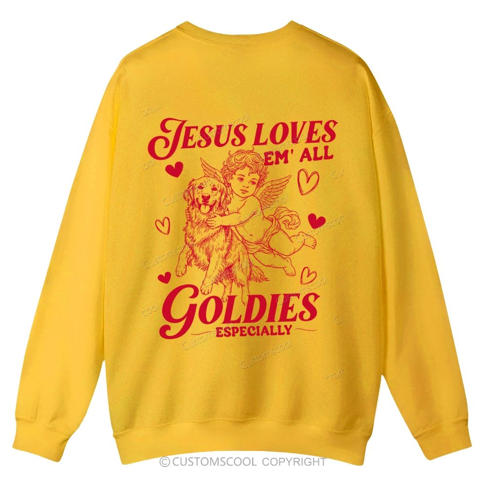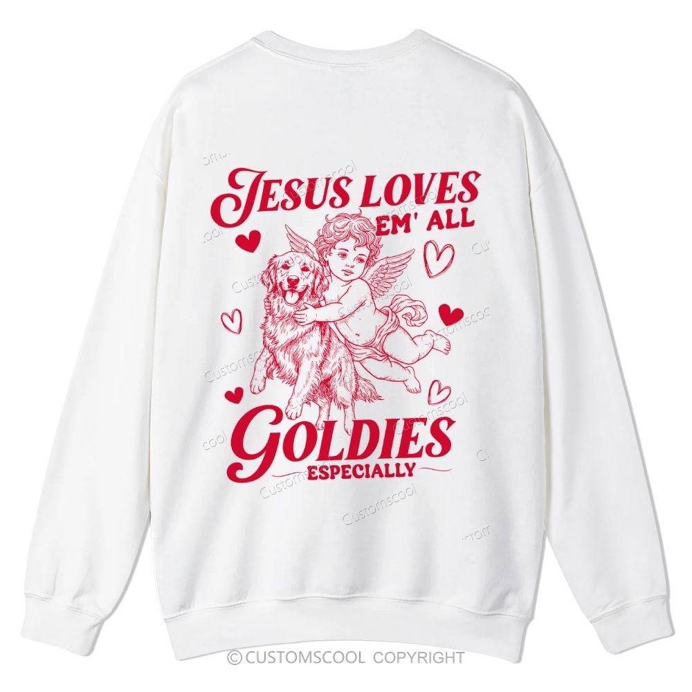Valentine Jesus Loves Golden Retriever Casual Crewneck Sweatshirt Customscool