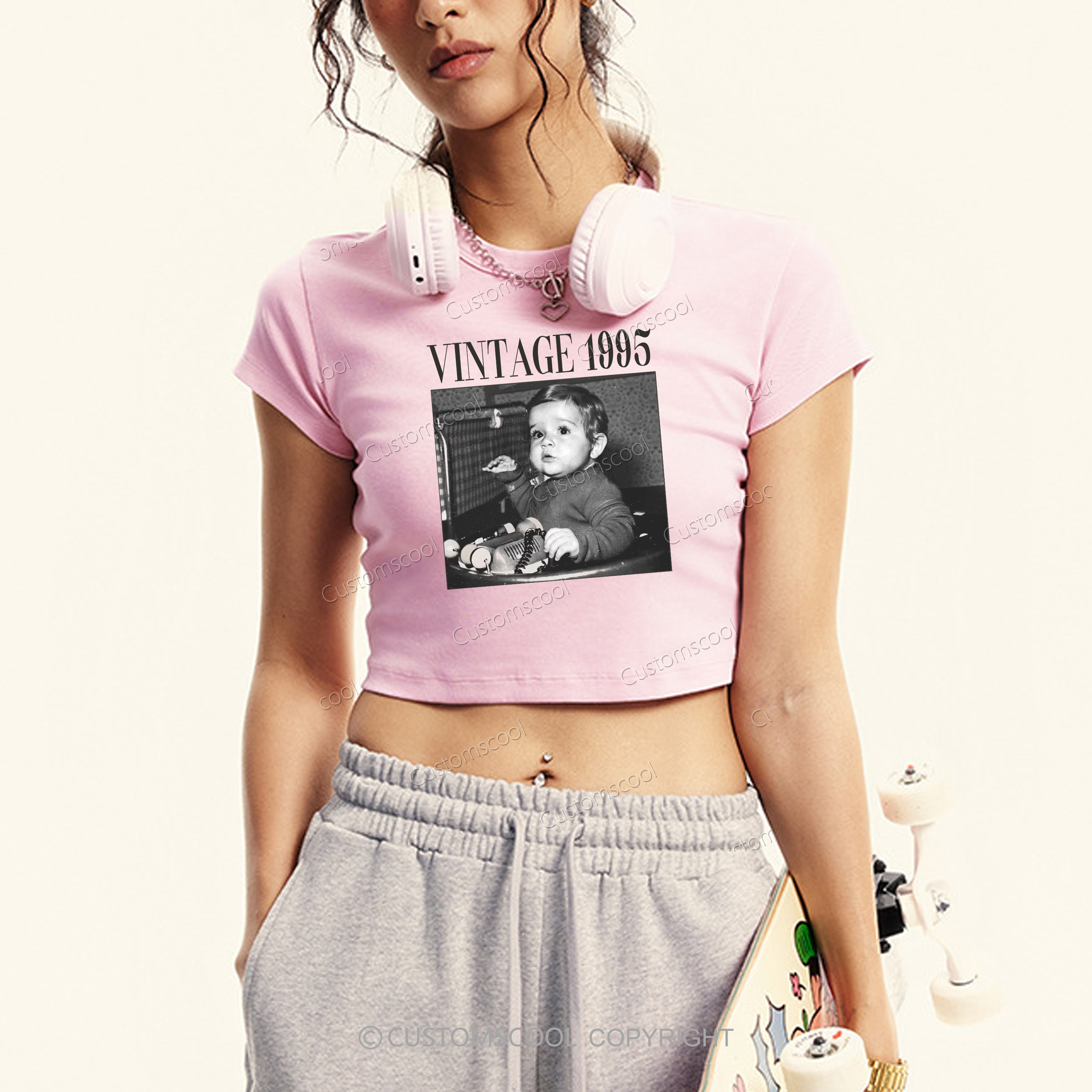 Vintage Addcustom Date Photo Washed Cropped T-Shirt Customscool
