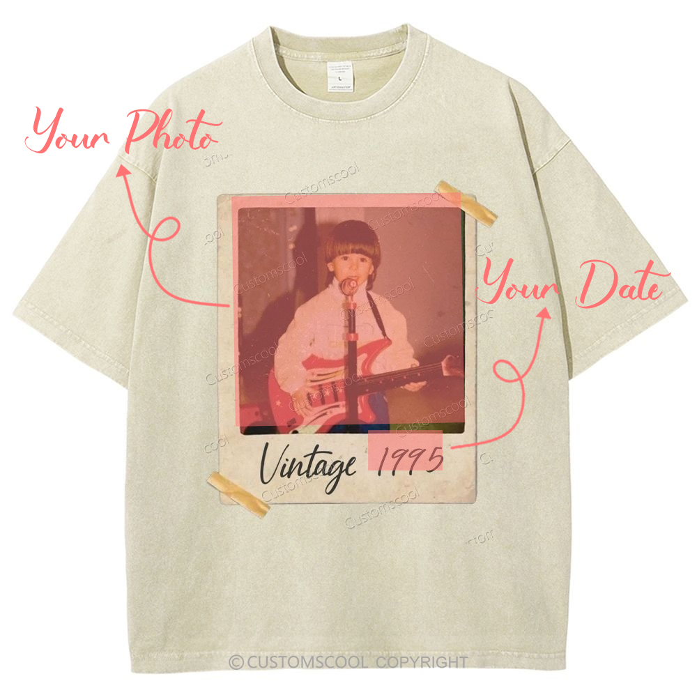 Vintage Addcustom Photo Date Unisex Fit Washed T-Shirt Customscool